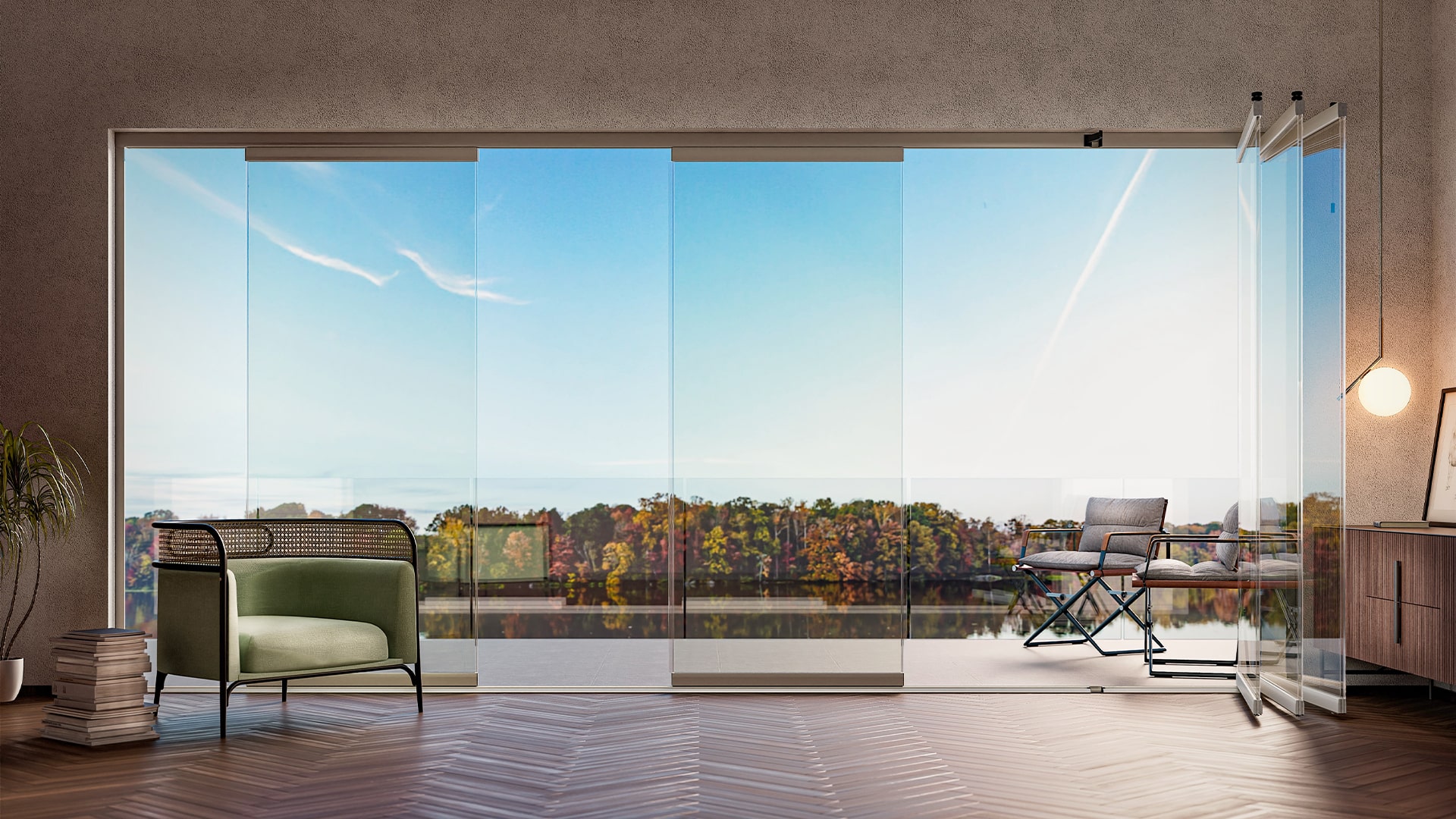 - Non occupano spazio. Questo perché le ante si impacchettano le une sulle altre su un unico vetro.