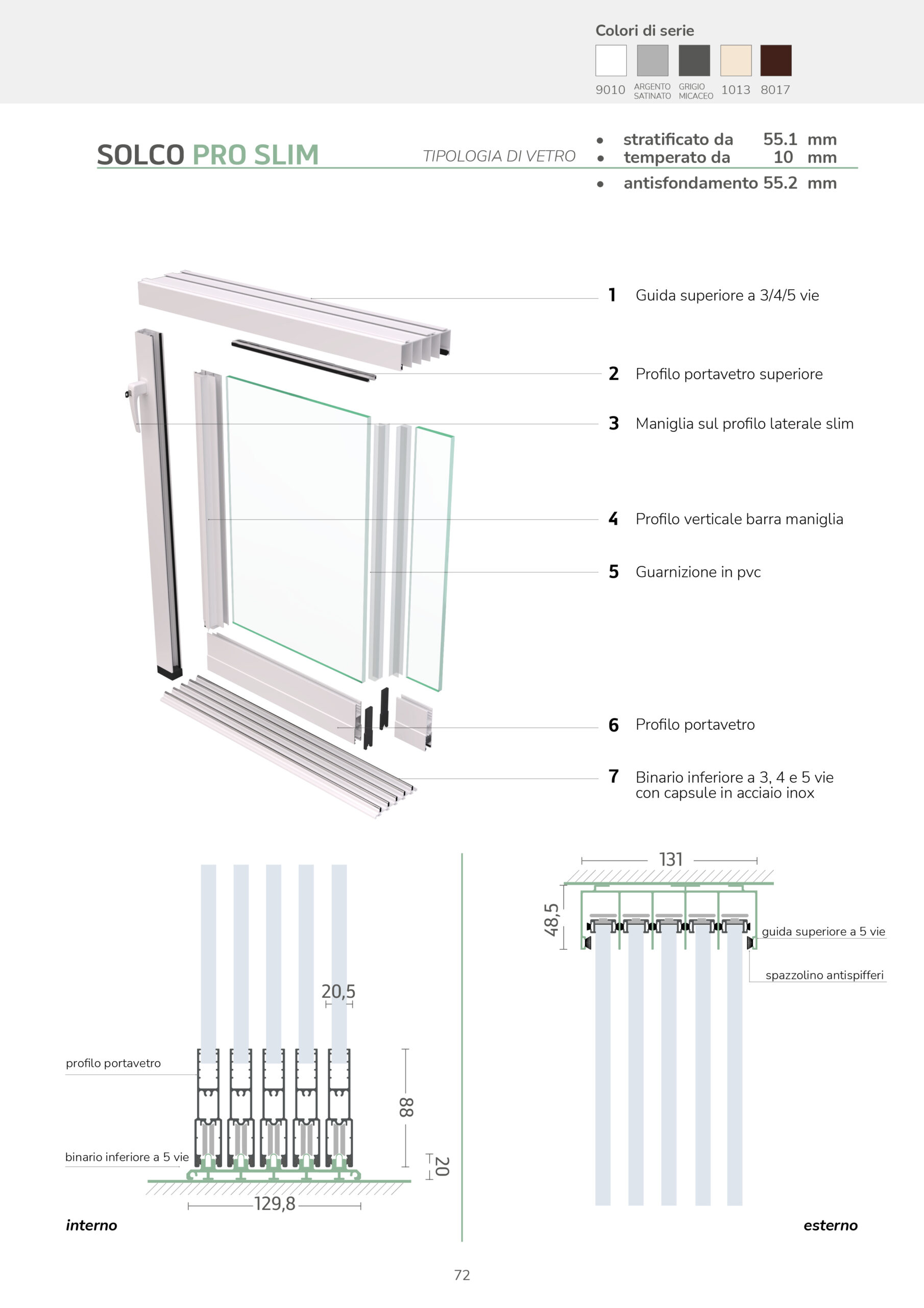 Vetrata (VePa) scorrevole con binari calpestabili da 20 mm. e capsule in acciaio inox che non creano barriera architettonica. Scarico del peso inferiore, ideali per proteggere dalle intemperie sia strutture per attività commerciali che pergole in PVC, bioclimatiche, pergolati, gazebo.